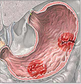 但有10%-15%患者可无疼痛,以并发症为首发症状。疼痛性质多为轻中度隐痛、胀痛或烧灼痛。胃溃疡疼痛位置在剑突下正中或偏左,多在饭后半小时至1小时发生,持续1-2小时后逐步缓解,形成进食疼痛缓解的规律,患者因此常有畏食现象;十二指肠溃疡多为空腹痛或夜间痛,疼痛位置常在上腹偏右,多发生于进食后3-4小时,持续至下次进餐后方可缓解。形成疼痛进食缓解的规律,疼痛发作时稍进食或服碱性药物可缓解,因此病人可有频食现象。